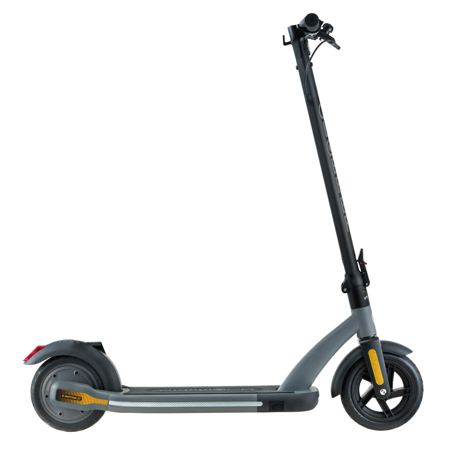 With a powerful motor and quality battery, patented folding system, user-friendly throttle, anti-slip deck, dual-braking system, LCD screen on the T-bar, and ISO bell and light, E-MOTION 27 is a reliable and fun 2-wheel e-scooter designed to last!