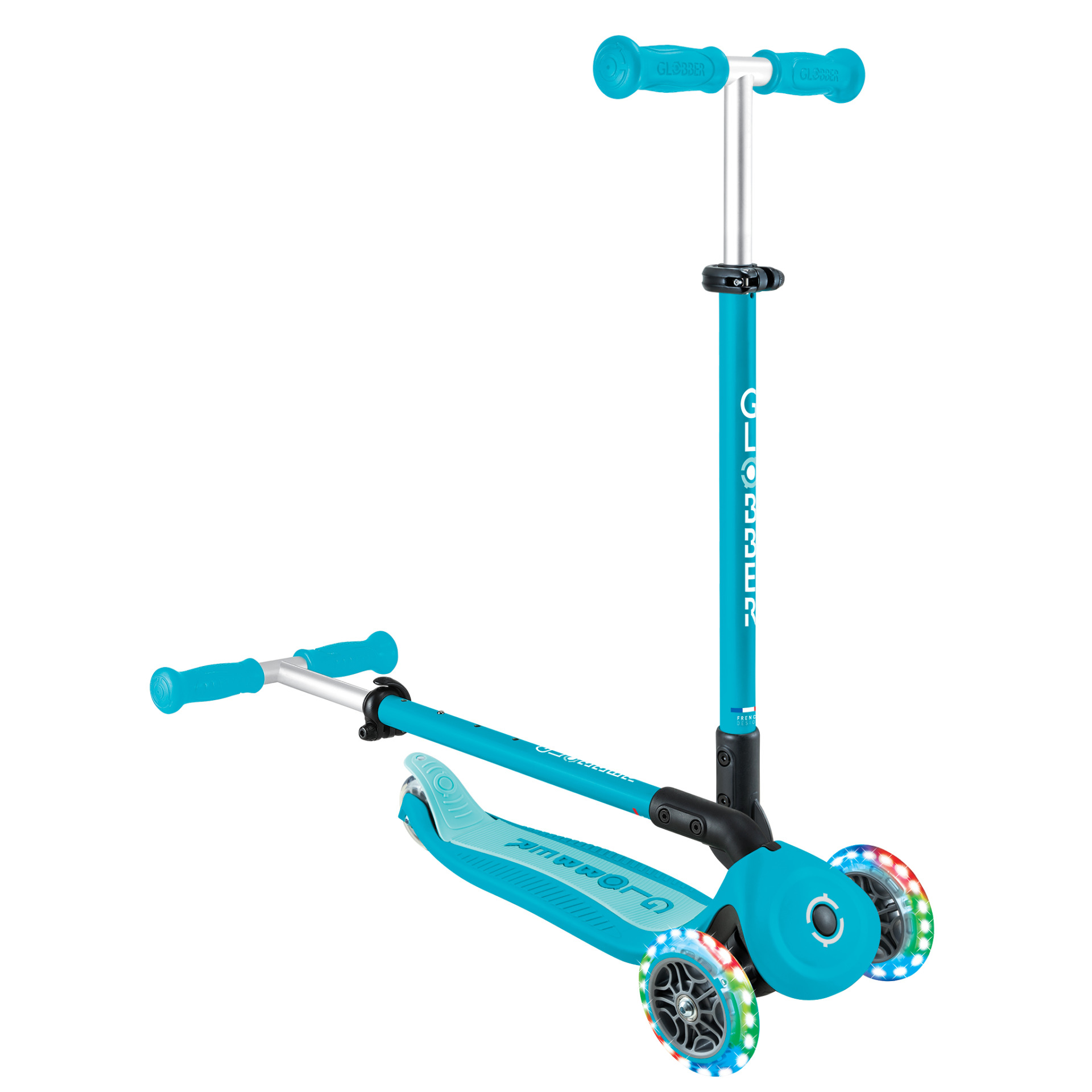 Leer die kleine voetjes te balanceren op een step op het tempo van je peuter. GO-UP ACTIVE LIGHTS 360° heeft een gepatenteerd stuurvergrendelingssysteem exclusief voor Globber: de voorwielen worden vastgezet in een verticale heen-en-weer beweging, waardoor je kind zijn evenwicht kan oefenen en vertrouwen krijgt in het steppen. Zodra ze klaar zijn om te rijden, laat je gewoon de stuurvergrendelknop los zodat ze het wiel kunnen draaien en zelf kunnen