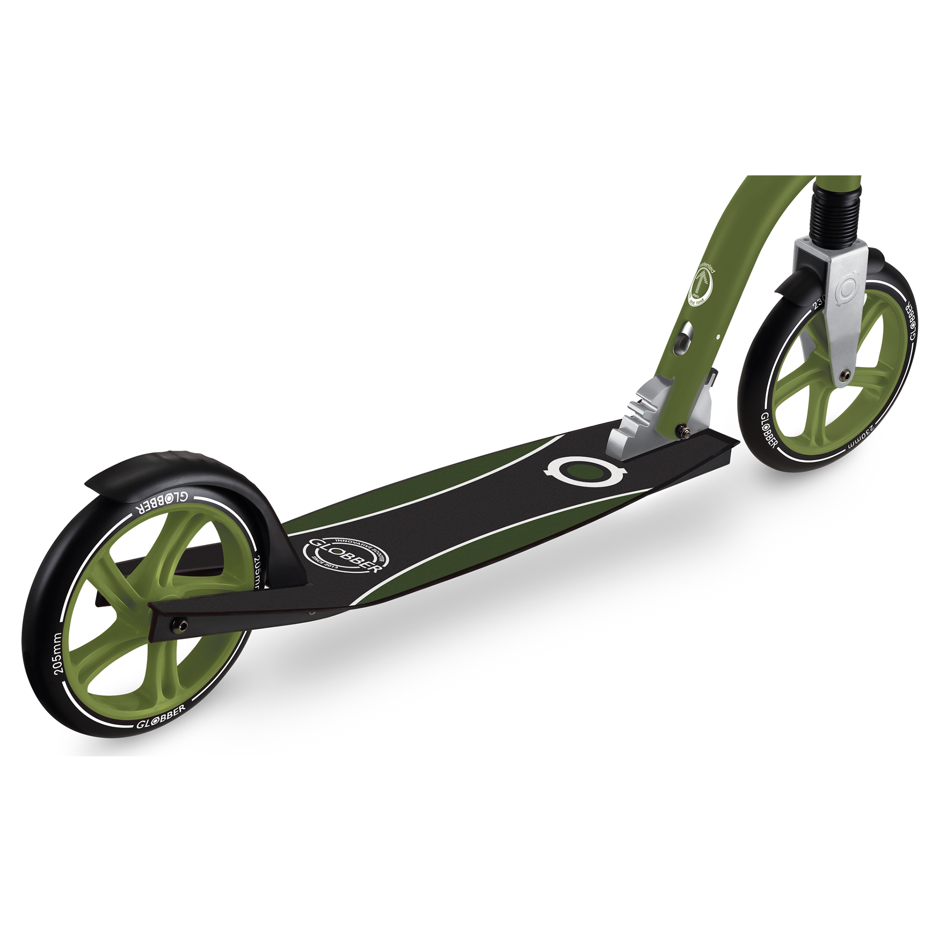De NL 230-205 DUO step met grote wielen voor tieners is een opvouwbare step met Globbers gepatenteerde vouwsysteem. Hiermee zet je je step met twee wielen met één druk op de knop in de opvouwstand voor compacte en gemakkelijke opslag. Je kunt je opvouwbare step ook gemakkelijk in de zelfstaande stand zetten wanneer je je step met grote wielen parkeert!
