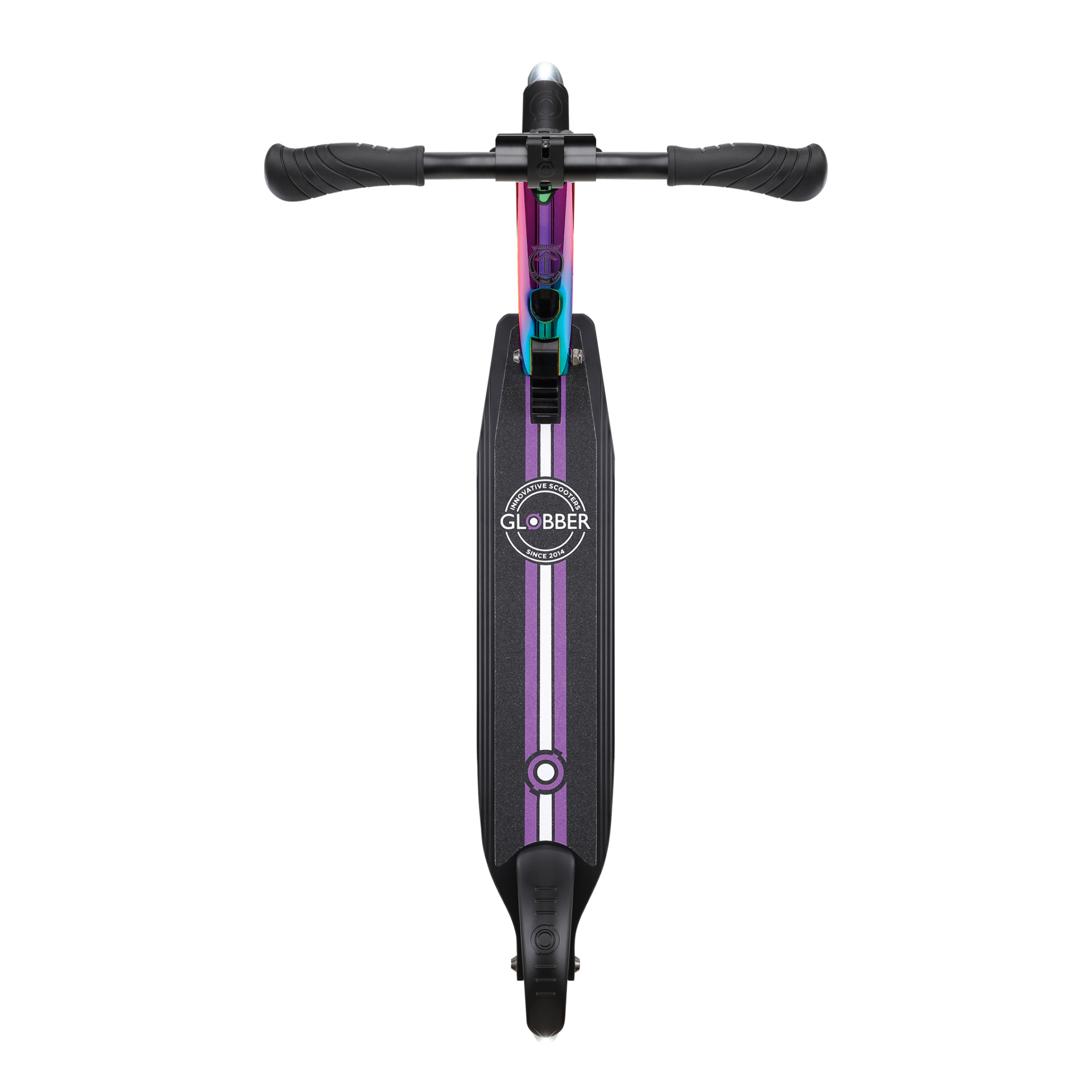 Stylish, chic, and light-weight with vibrant colour options, FLOW ELEMENT LIGHTS features a patented folding system, a 4-height adjustable T-bar with foldable handles, trendy anti-slip grip tape, a strong rear brake, and bright light-up 125mm wheels to deliver robust rides—all with a fun-tastic glow!