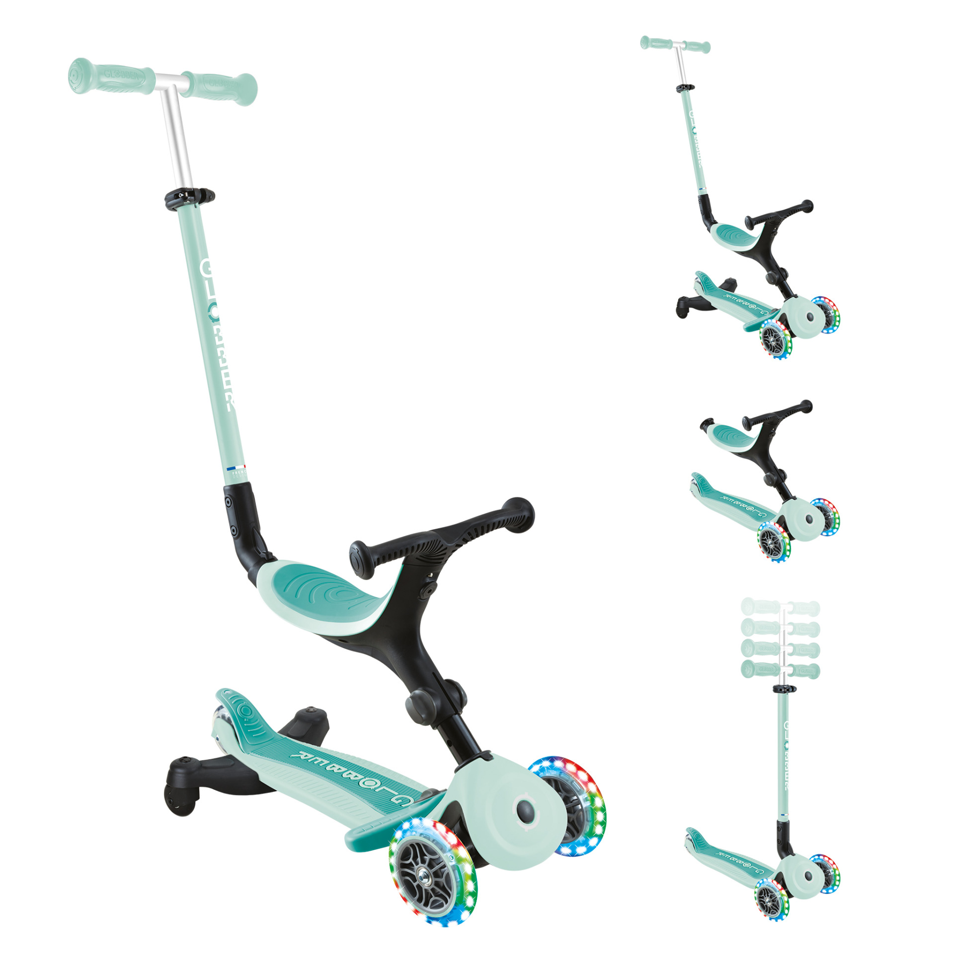 Seien Sie der Erste, der eine Bewertung abgibt “Globber Laufrad / Dreirad | GO UP Active Lights 360° | Mint Dark Mint”