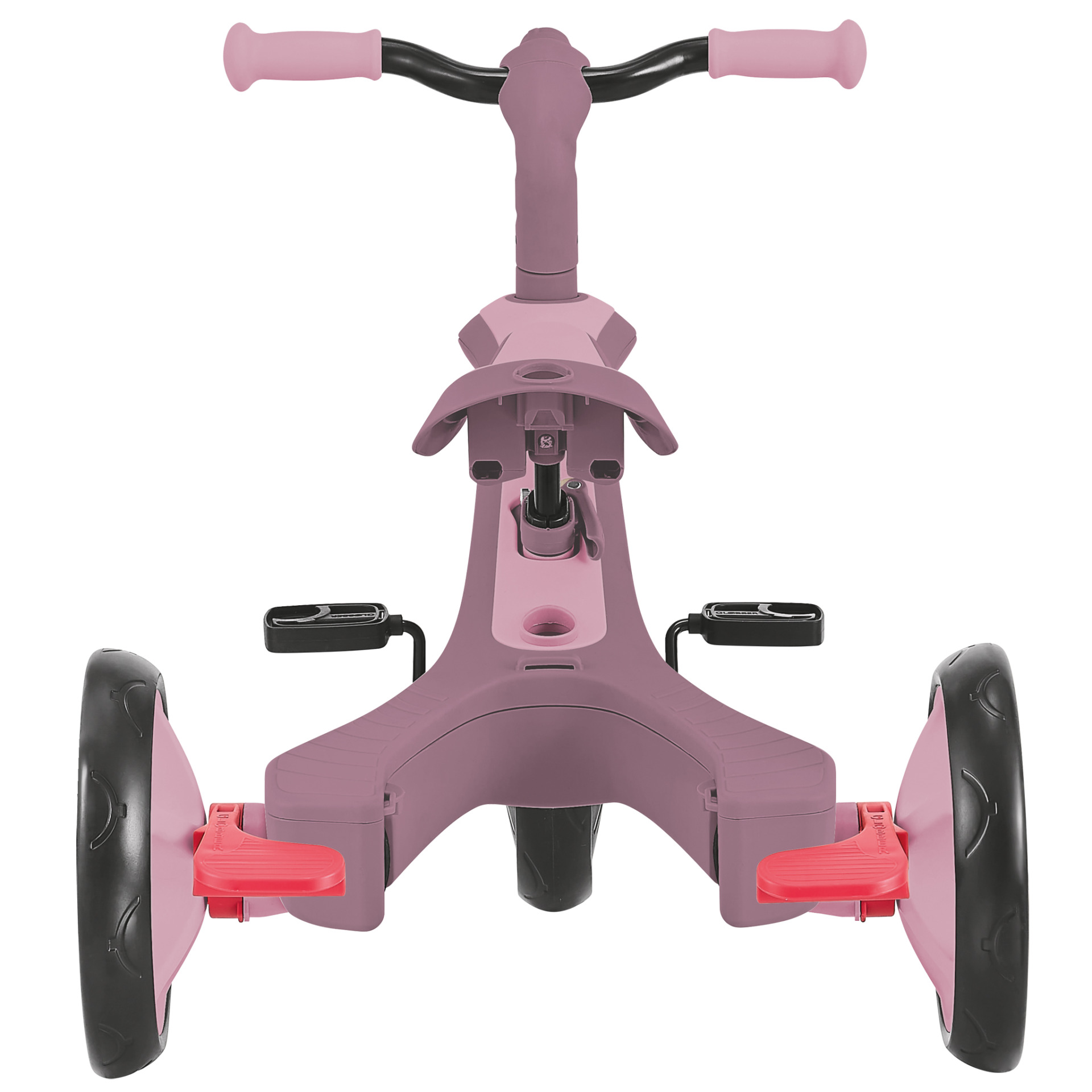 Verwandle dein Globber-Fahrzeug im Handumdrehen vom Kinderwagen in ein geführtes Dreirad, ein selbstständiges Trainings-Trike oder ein Laufrad – ganz ohne Schrauben oder Werkzeug. Mit einem einfachen Knopfdruck wechselst du zwischen den vier Modi und passt das Gefährt perfekt an das Entwicklungsstadium deines Kindes an.