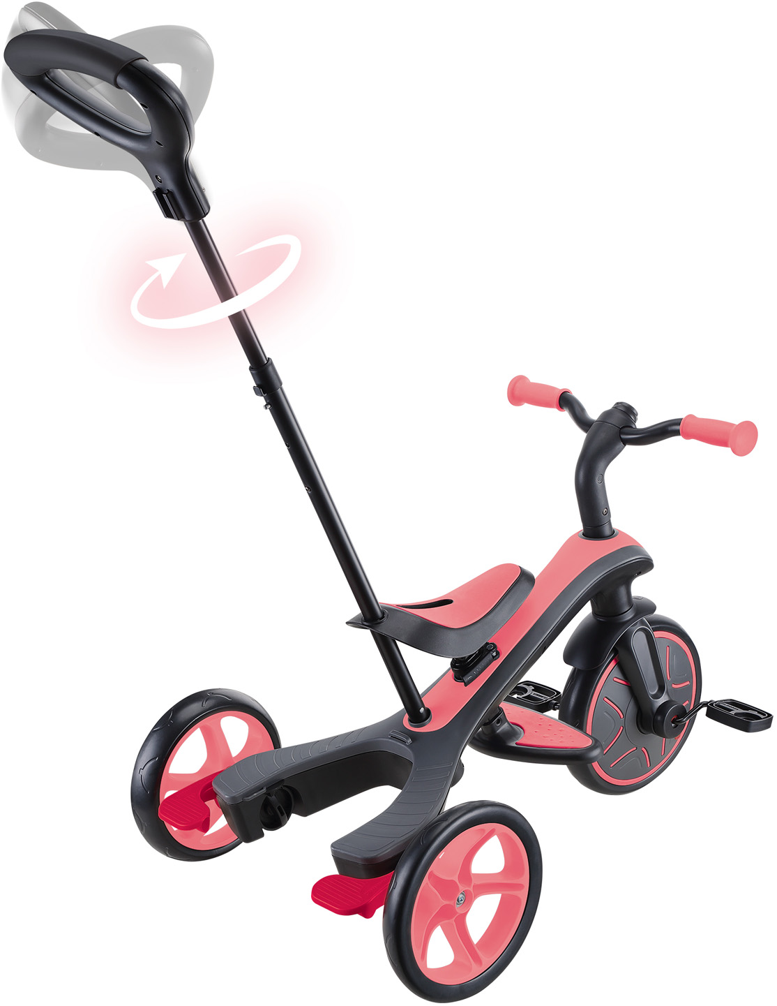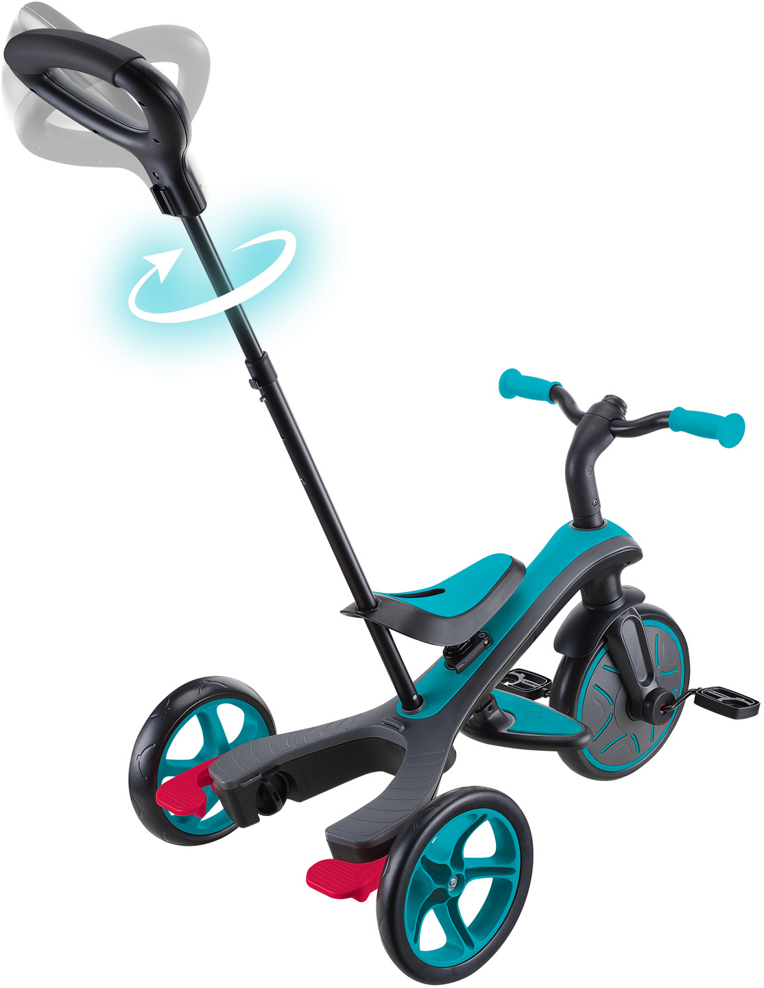 Nehmen Sie Ihr Kind mit auf eine Entdeckungsreise auf Rädern! EXPLORER TRIKE 4in1 ist ein All-in-One-Schubdreirad für Kleinkinder ab 10 Monaten, das 4 verschiedene Stufen bietet: Kleinkind-Dreirad (10-36M), geführtes Dreirad (18-36M), Trainings-Dreirad (24-36M) und Balance-Bike (2-5J), um sich bequem mit der Entwicklung Ihres Kindes zu verändern.