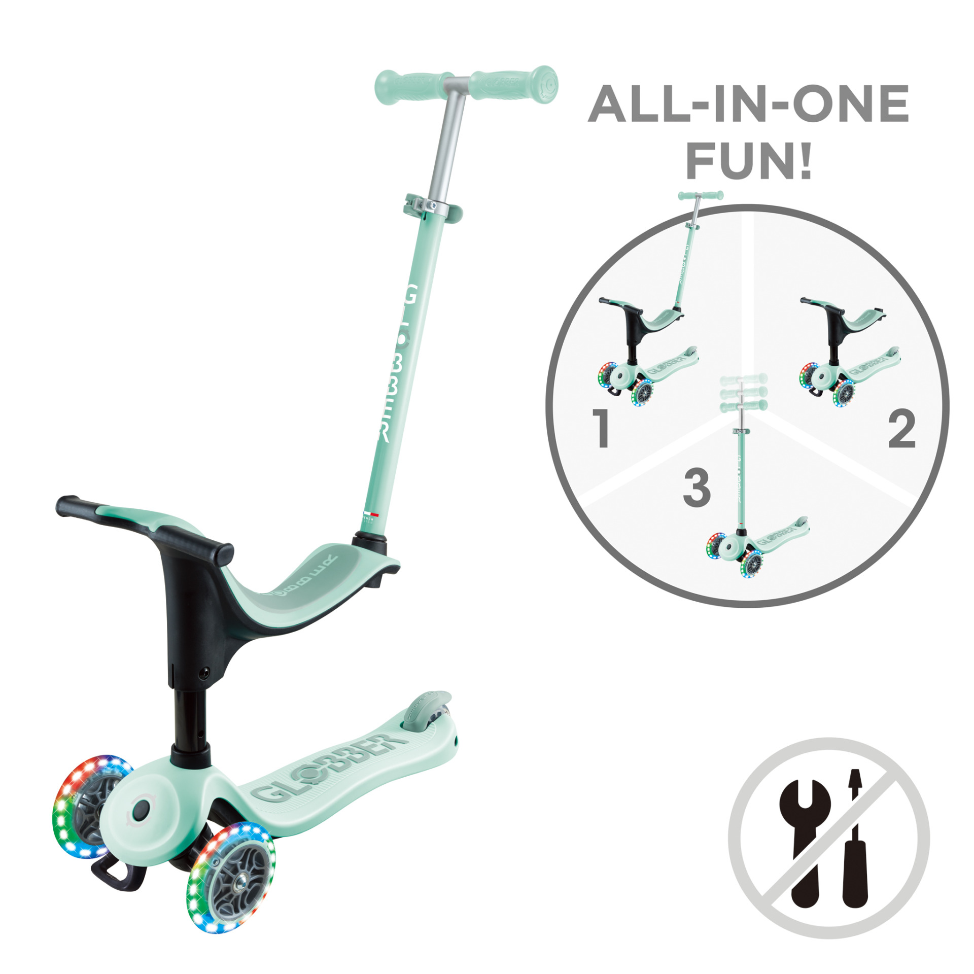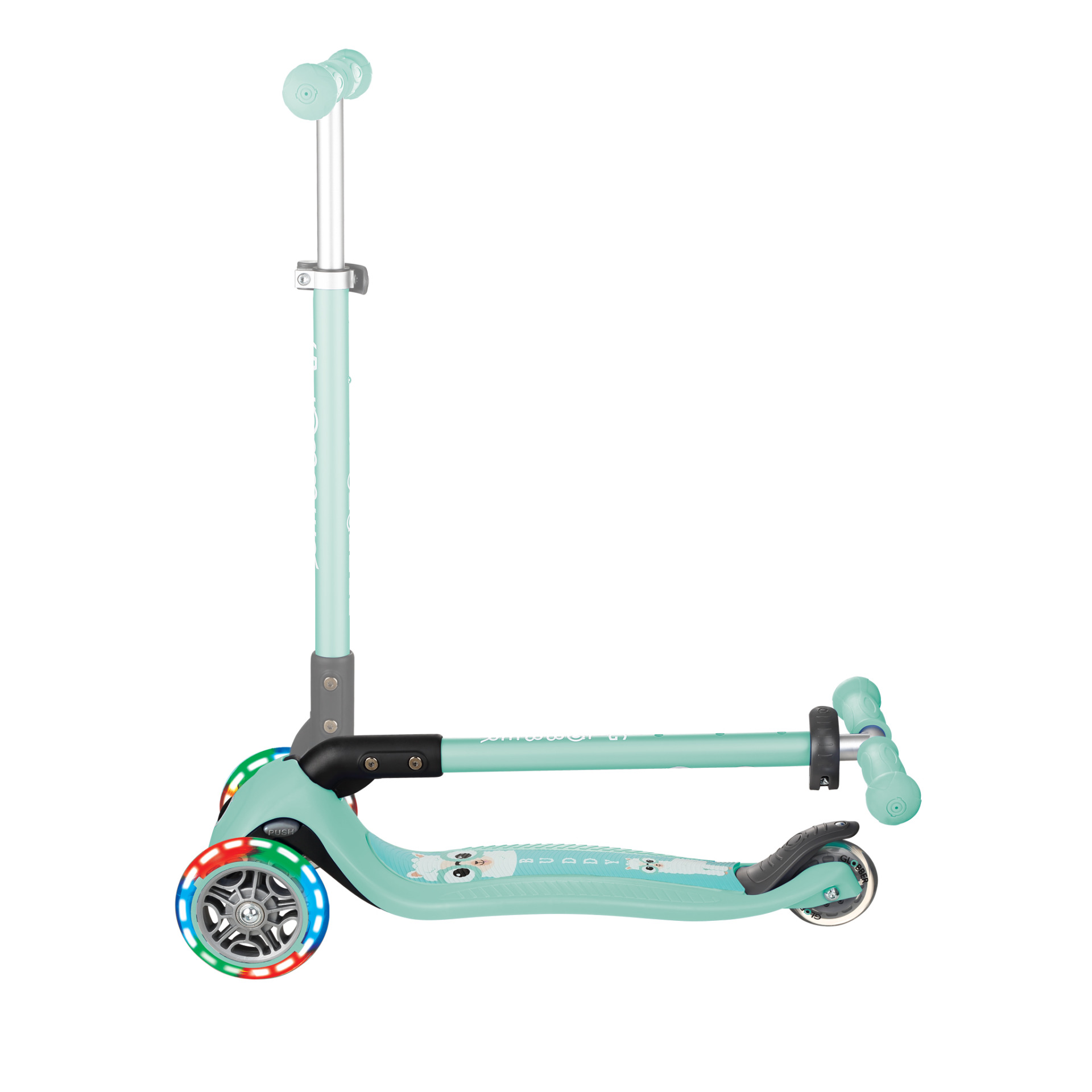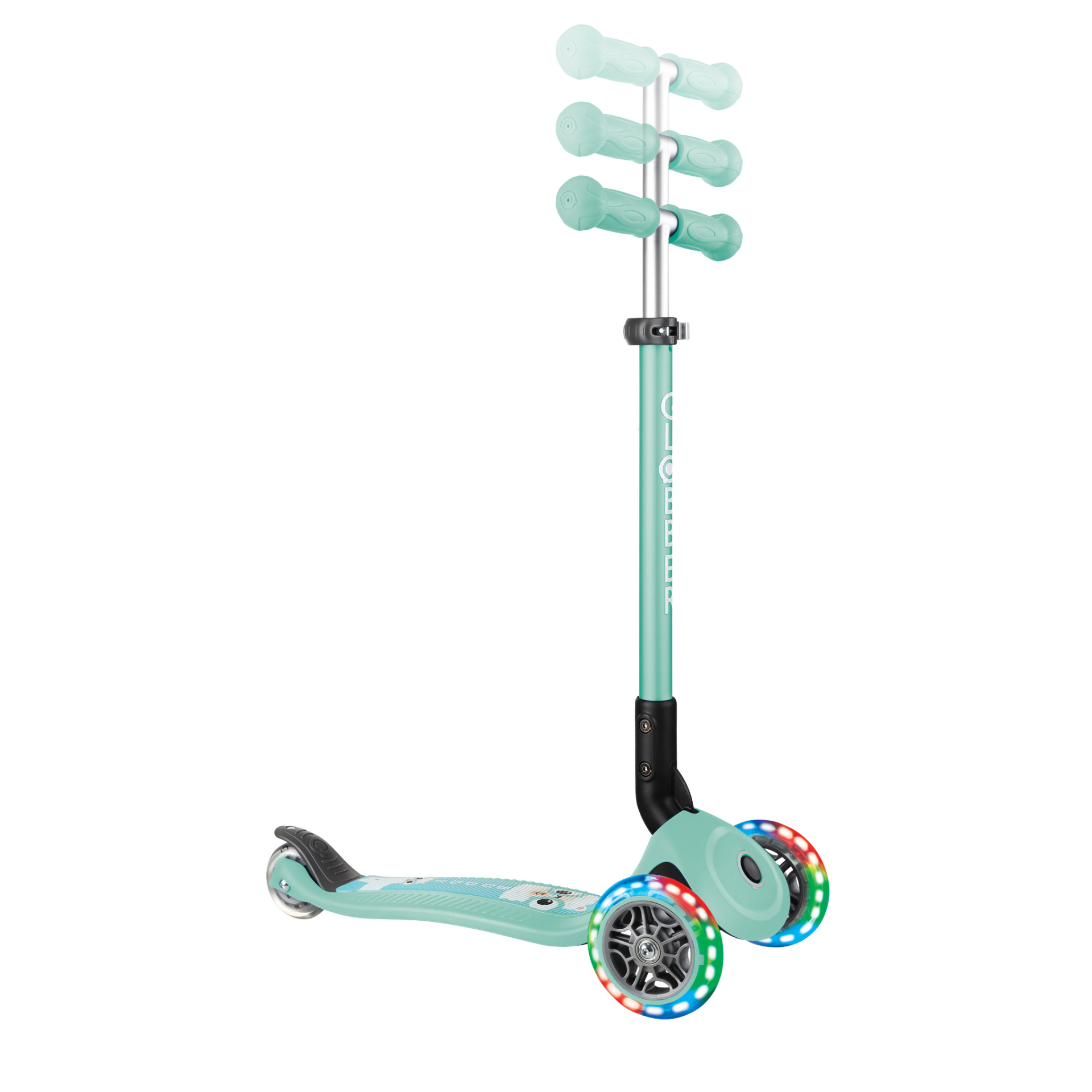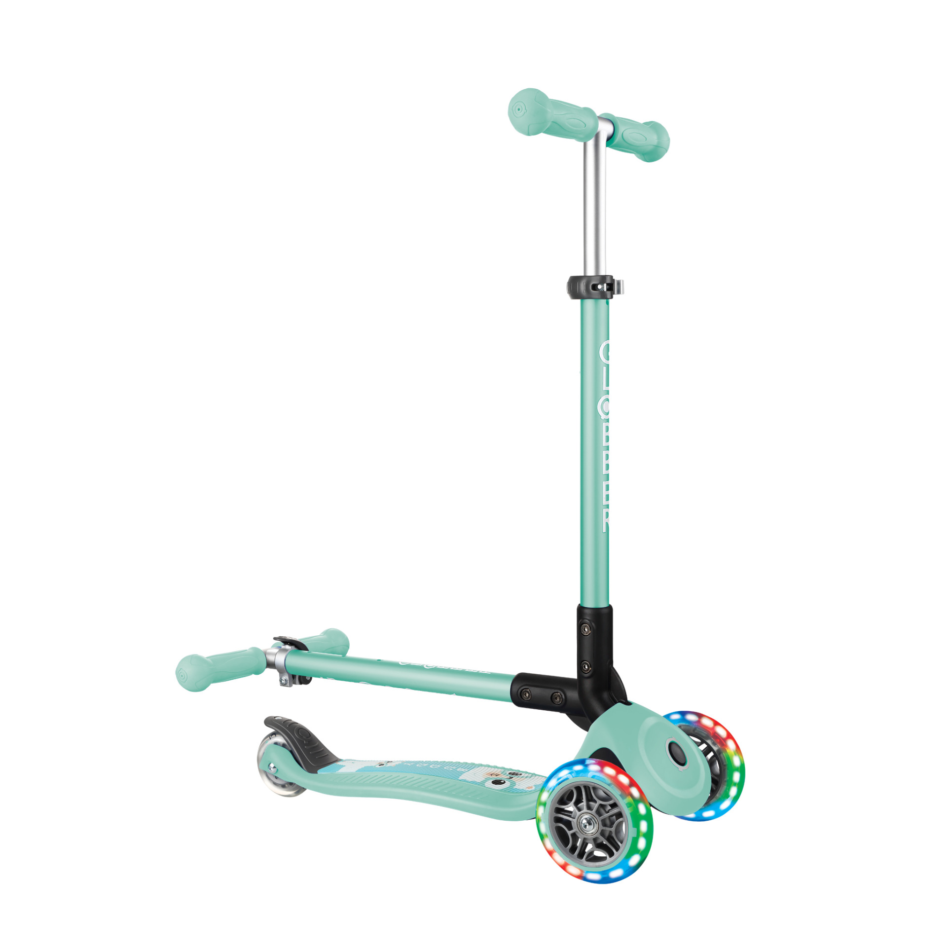 Bereit für die ersten Fahrversuche? Der Globber Primo Foldable Fantasy Lights – Mint Buddy ist der ideale Begleiter für Kinder ab 3 Jahren, die spielerisch ihre Mobilität entdecken möchten. Mit seinem einzigartigen Fantasy-Design, dem leuchtenden Mint-Look und den stylischen LED-Rädern sorgt dieser Mini Scooter nicht nur für jede Menge Fahrspaß, sondern auch für strahlende Kinderaugen. Dabei überzeugt der Scooter durch kindgerechte Funktionen, höchste Sicherheit und einen attraktiven Preis – perfekt für den Einstieg in die Welt des Scooterfahrens.