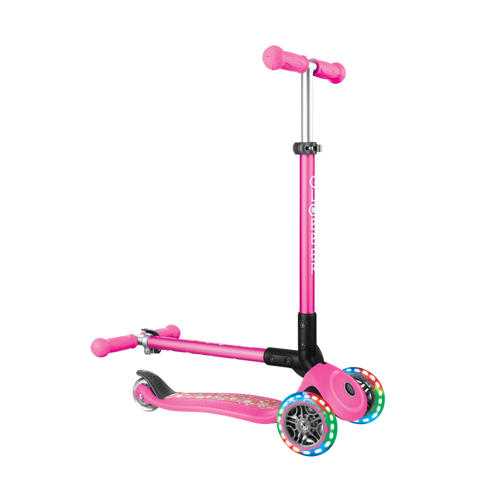 3-Rad Leucht-Scooter für Kinder mit gemustertem Scooter-Deck.