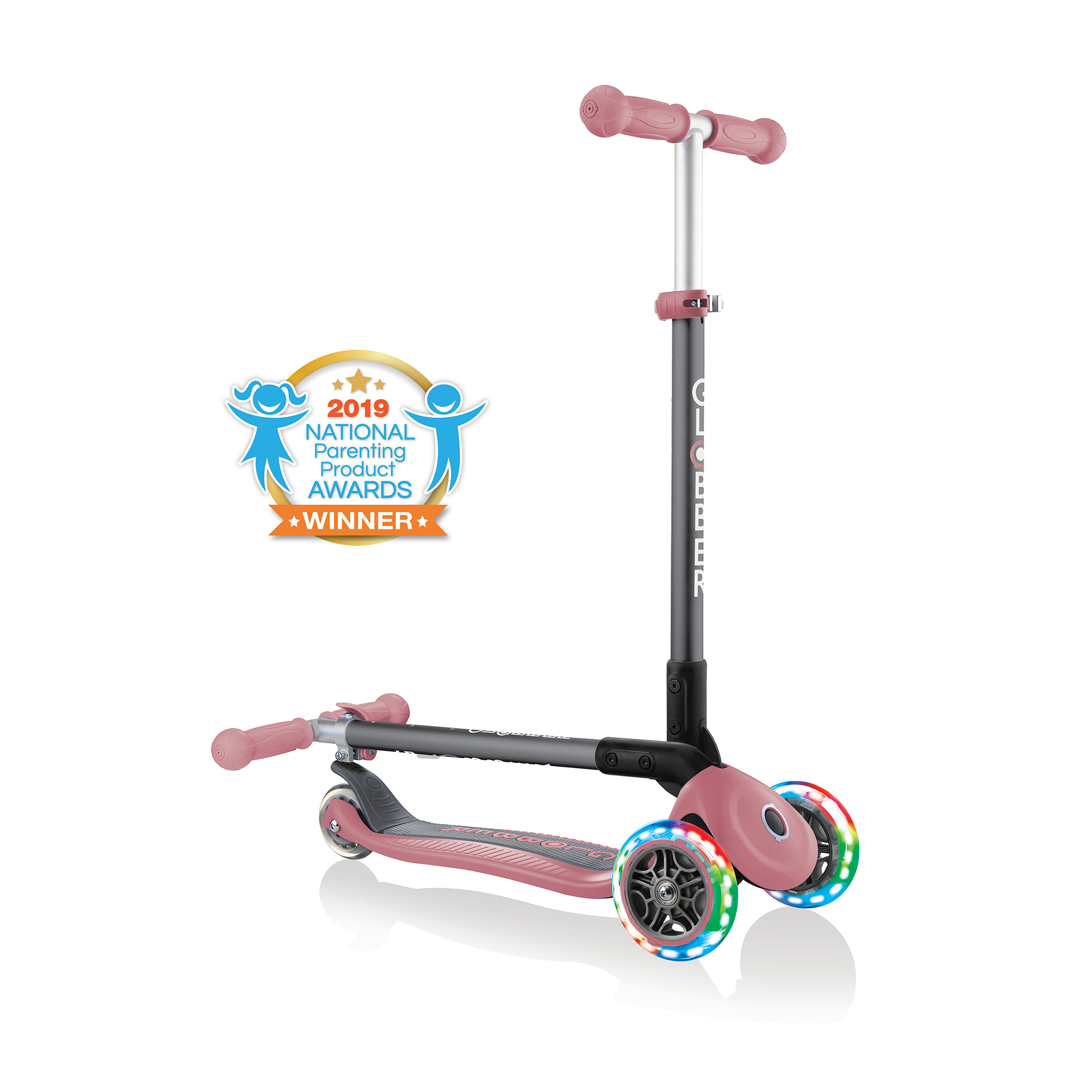 Genießen Sie leuchtende Scooting-Tage mit PRIMO FOLDABLE LIGHTS! Dieser 3-Rad-Scooter mit LED-Lichtern für Kinder ist mit LED-Fronträdern ausgestattet, die in Blau, Grün und Rot blinken und so den ganzen Tag über eine bunte Fahrt bieten. Außerdem sind keine Batterien erforderlich, da die Leuchträder mit Dynamo-Beleuchtung betrieben werden – sie läuft rein mit der kinetischen Energie, die durch das Scooten erzeugt wird, was bedeutet, dass sie völlig batteriefrei ist!