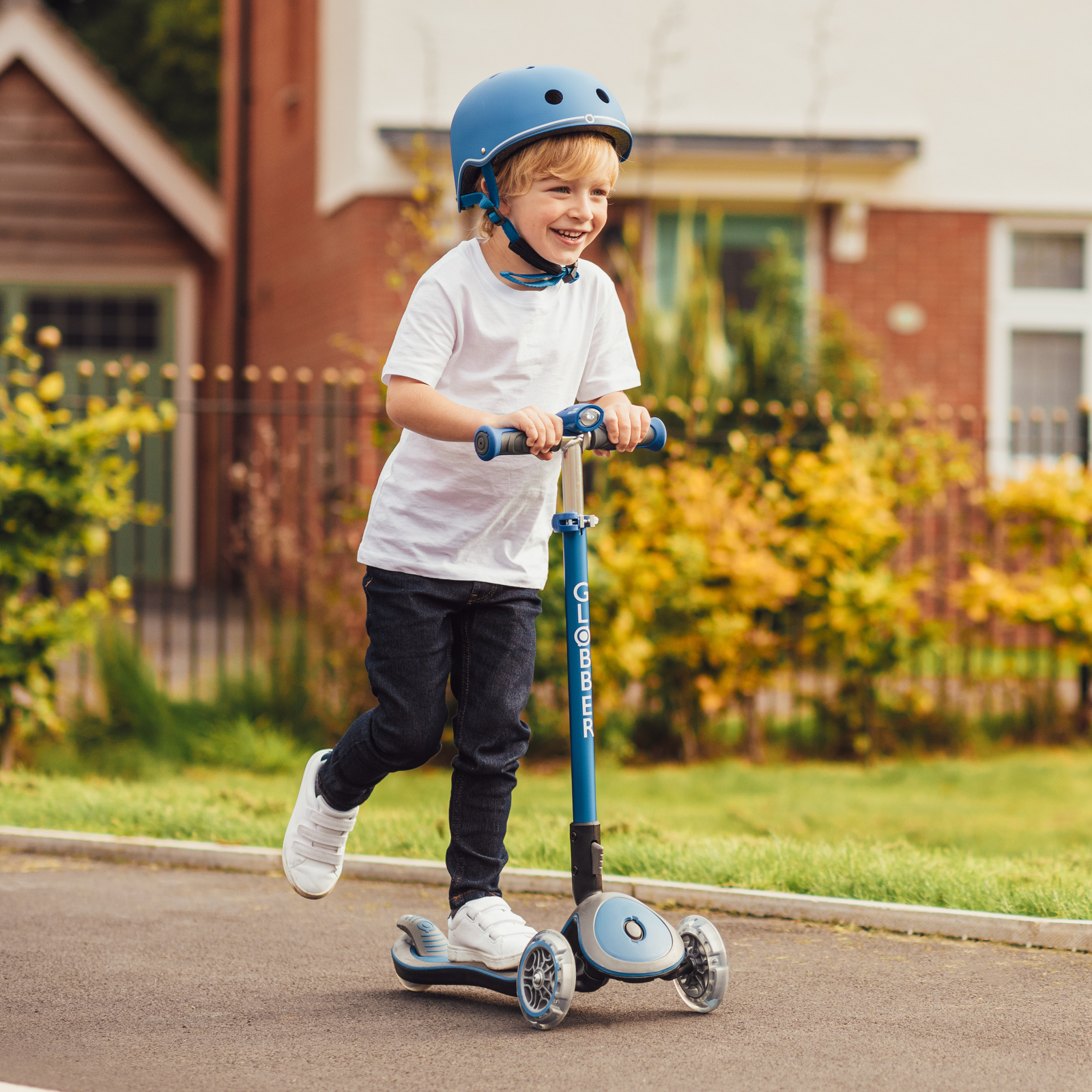 Das patentierte elliptische Klappsystem von GLOBBER verwandelt deinen Roller im Handumdrehen in den platzsparenden Trolley-Modus, perfekt für Transport und Lagerung. Mit dem patentierten Lenkschlosssystem trainierst du zuerst dein Balancegefühl, bevor du für das freie Lean-to-Steer-Fahren entsperrst.