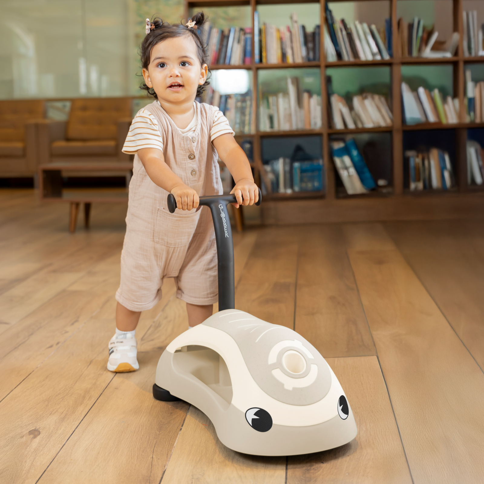 2‑in‑1 Aufsitzauto & Lauflernhilfe (6–36 Monate): Fördert Sitz‑, Steh‑ und Laufentwicklung, belastbar bis 20 kg.