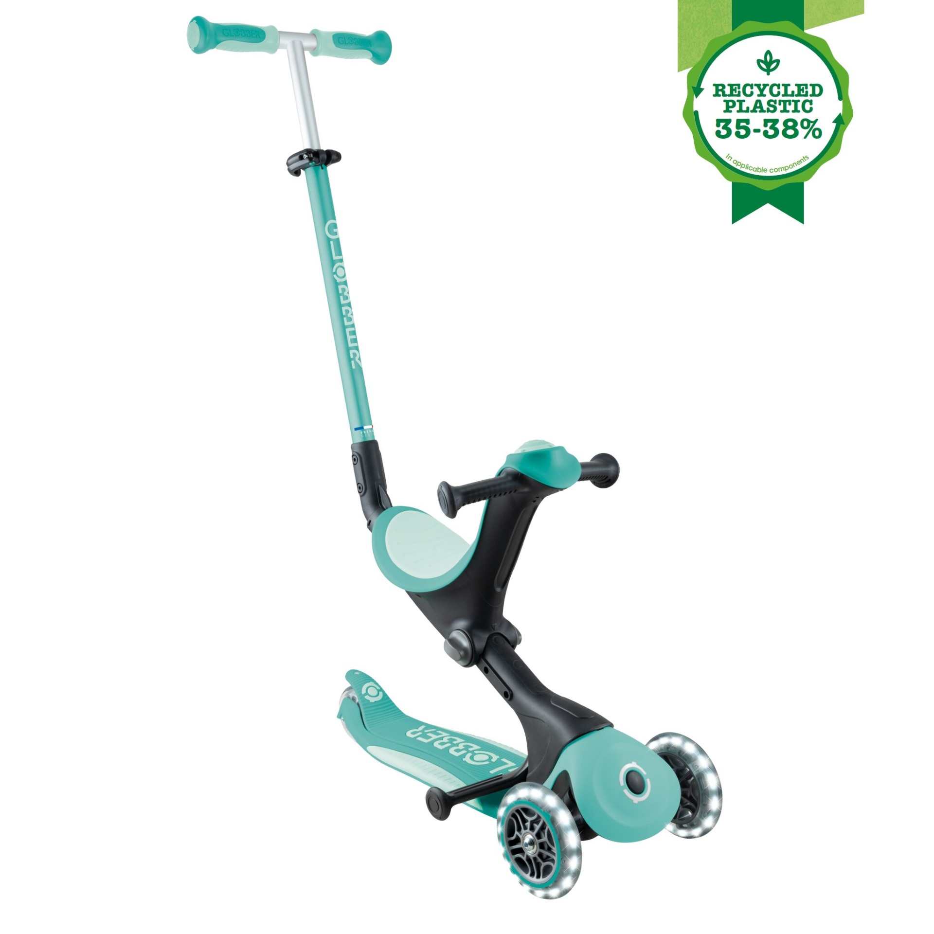 Toate trotinetele GO•UP pentru copii au un scaun reglabil și moale din TPR pentru a găsi cea mai confortabilă înălțime pentru copilul tău în modul de mers pe trotinetă și de bicicletă de echilibru. Scăunel trotinetelor noastre pentru copii GO•UP diferă în formă și dimensiune în funcție de modelele noastre, pentru a găsi potrivirea perfectă pentru micuțul tău.