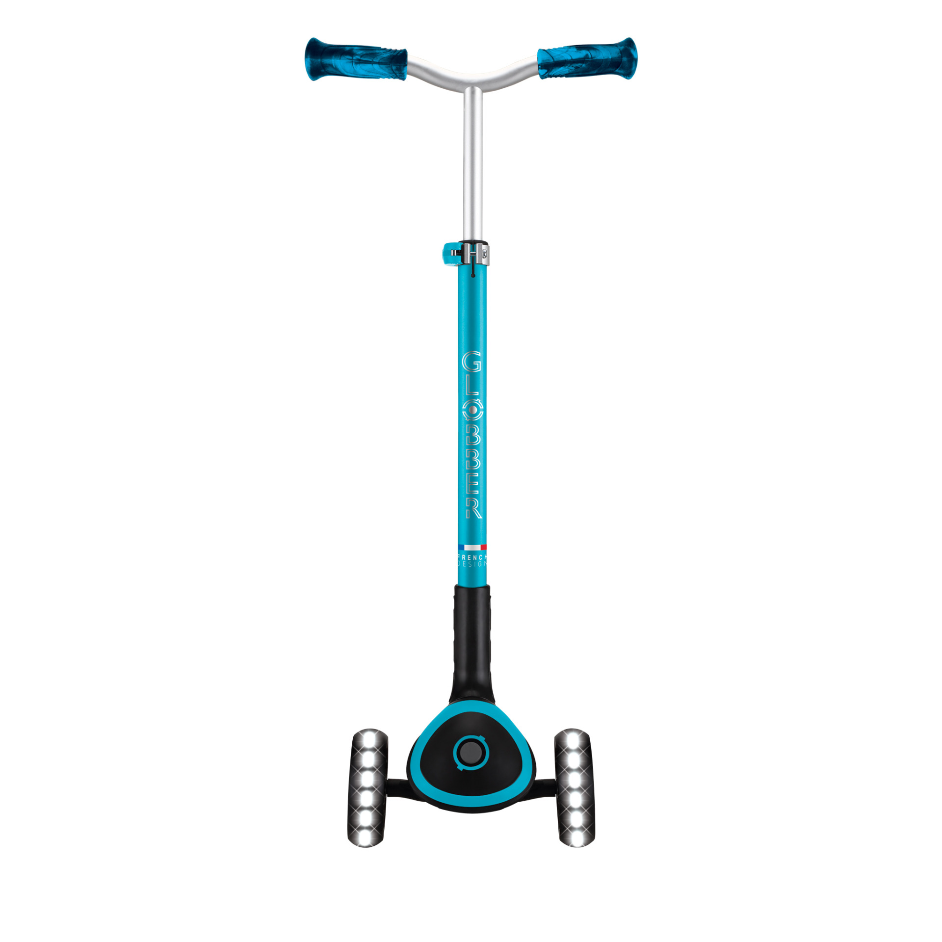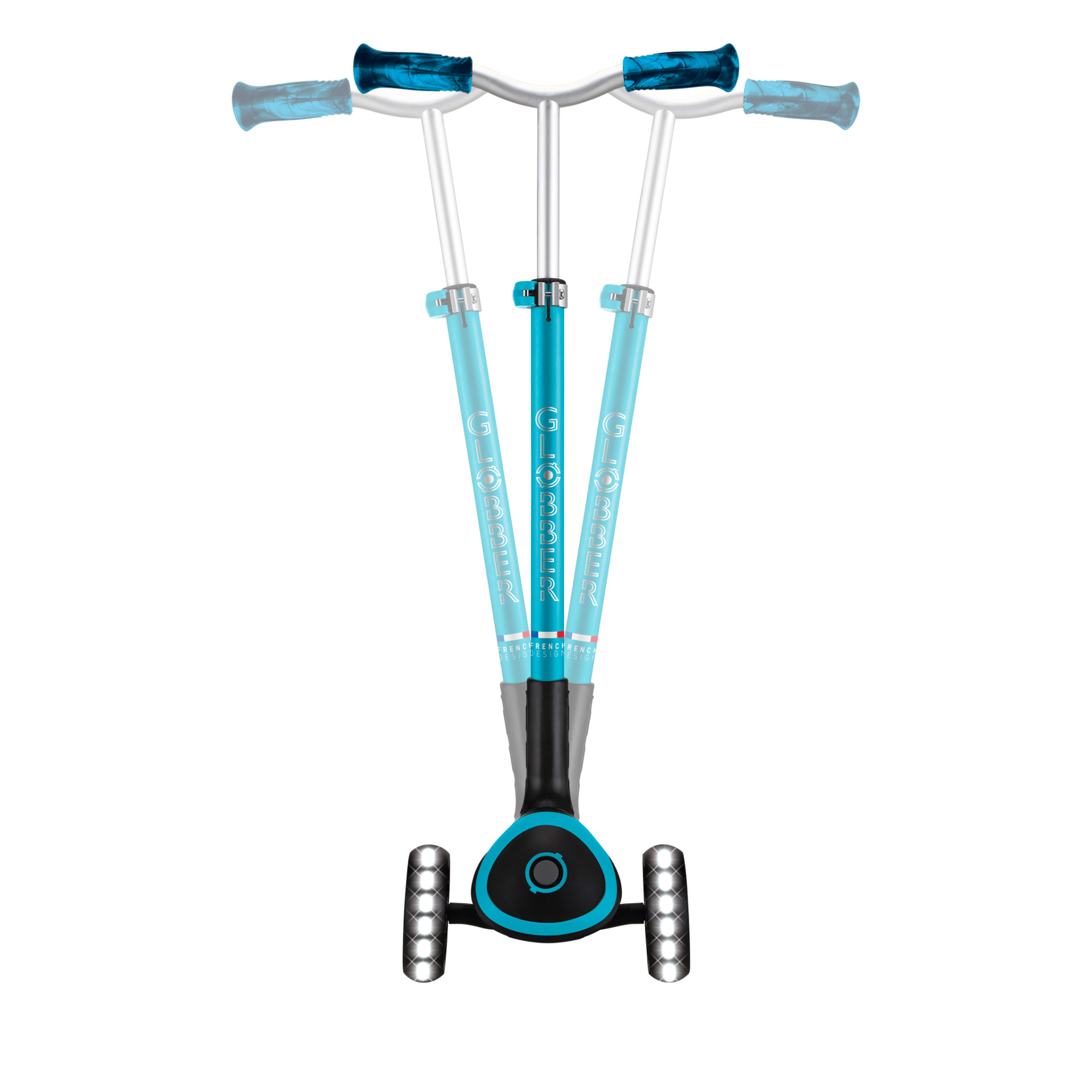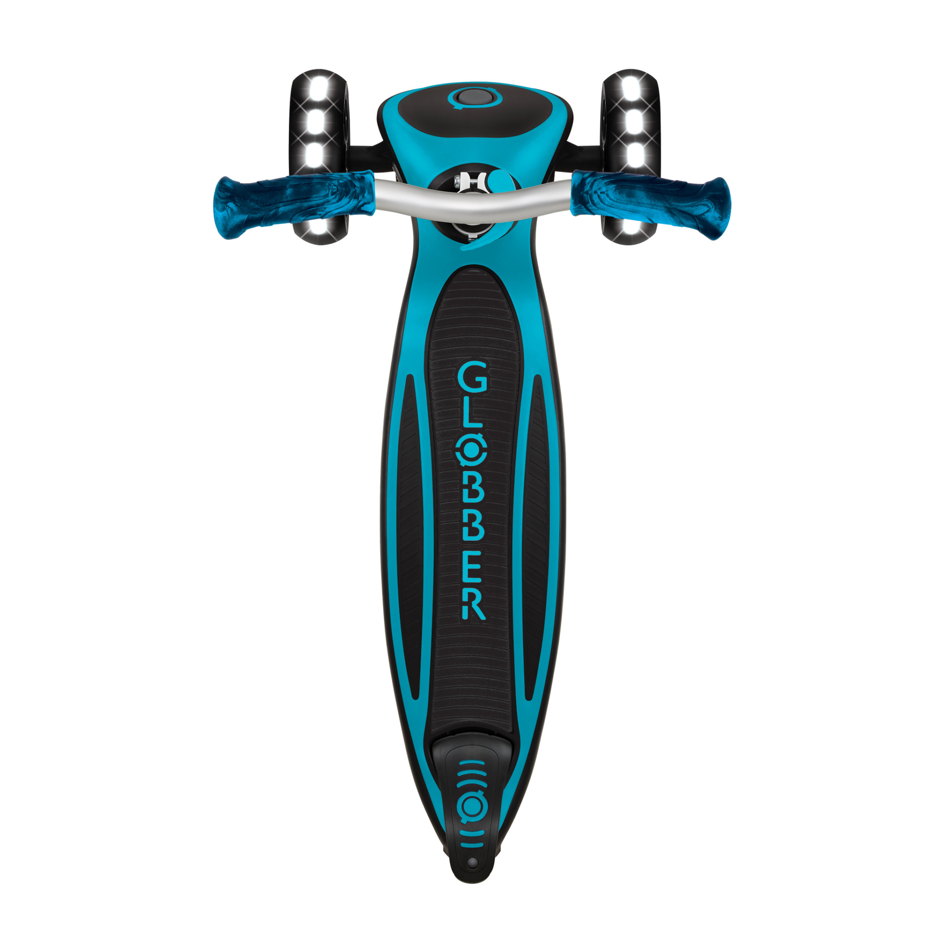 Păstrează-ți echilibrul ca un profesionist: sistemul patentat Globber de blocare a direcției blochează automat cele două roți frontale ale trotinetei ACE LIGHTS în linie dreaptă și poate fi deblocat foarte ușor, printr-o simplă apăsare de buton. Astfel, poți învăța mai întâi să îți ții echilibrul în siguranță, apoi poți trece la direcționarea liberă, în care virezi doar înclinând corpul.